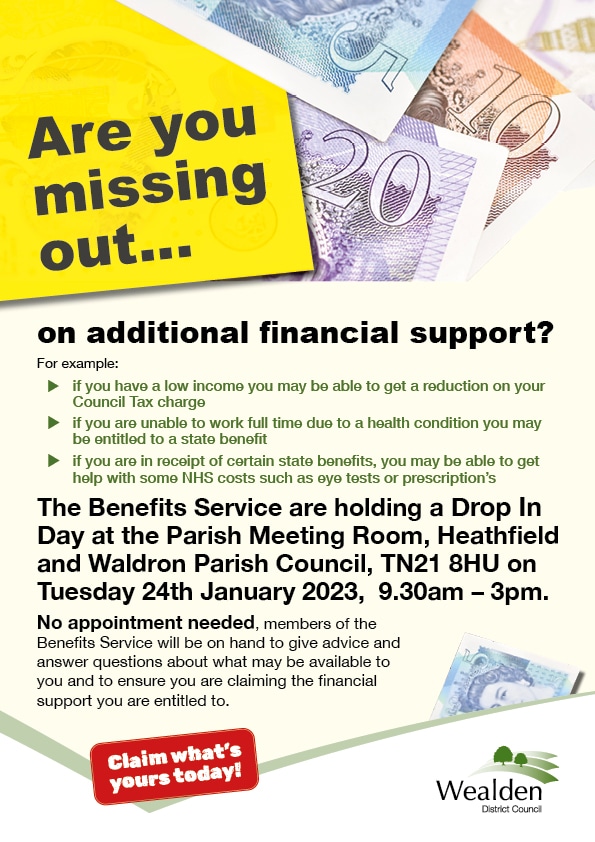 Residents living in Wealden are invited to a benefits drop-in session in Heathfield on Tuesday 24 January.