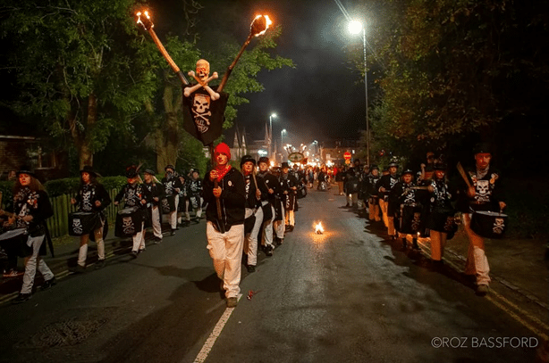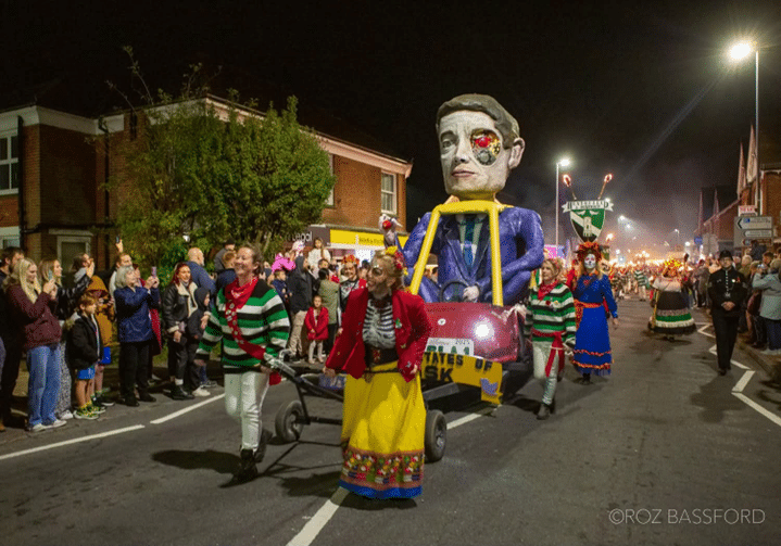 The grand procession began at the Heathfield Tavern, led by the Heathfield Ranks in their iconic Day of the Dead costumes — faces painted in vivid colours, torches blazing.