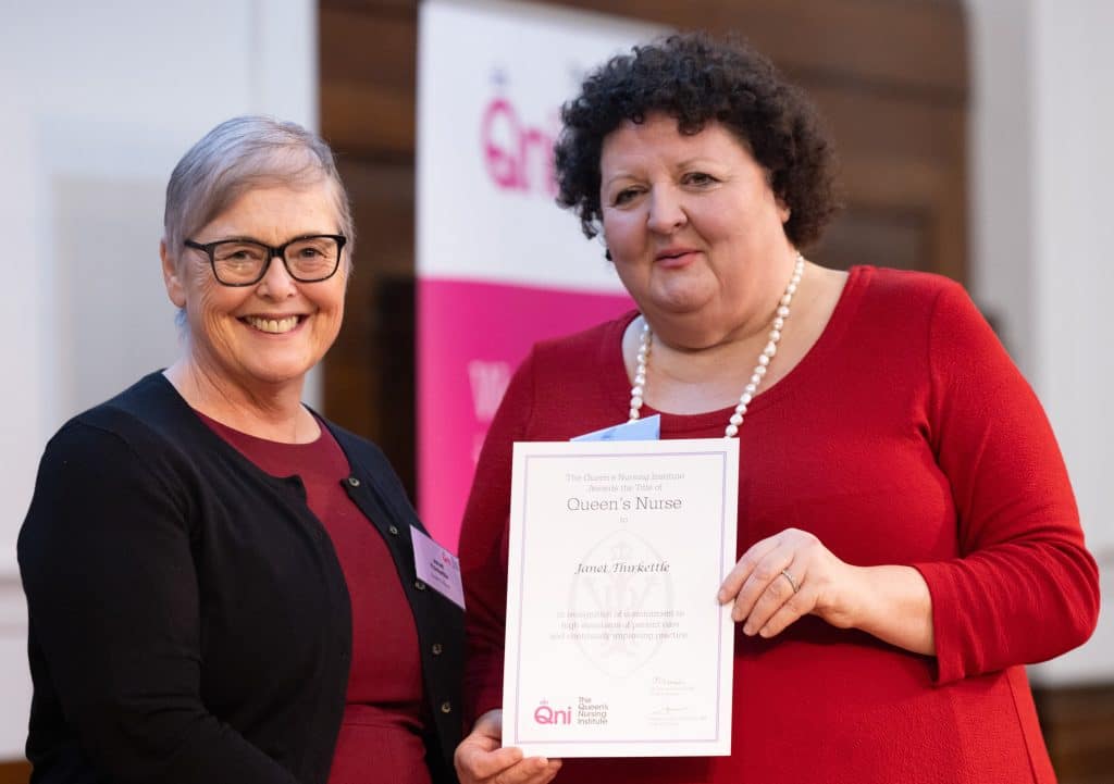 The title recognises Jan’s commitment to high standards of patient care, learning and leadership in community nursing. Jan was presented with her certificate at an awards ceremony held in London in December.