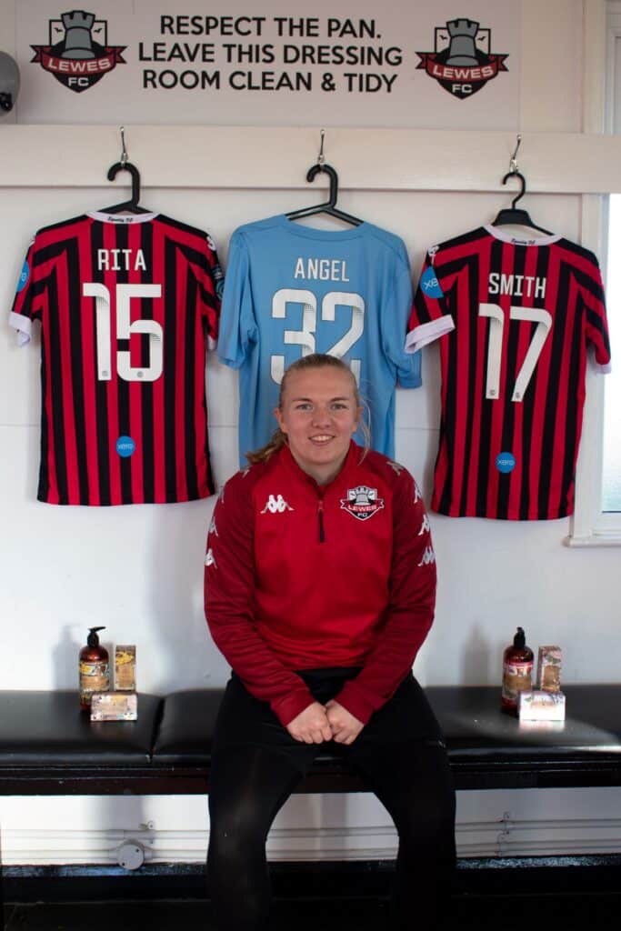 The English Soap Company has agreed to sponsor three Lewes FC players (Frankie Angel #32, Jamie Rita #15 and Zoe Smith #17) and the manager of the women’s team Scott Booth because the club’s values align closely with its own.