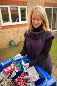 • Recycle as much as possible: Don’t forget to recycle those empty glass jars, beer and wine bottles in your recycling box. Put drinks cans, food tins and plastic bottles, pots tubs and trays, beverage cartons, paper and cardboard packaging and (clean) aluminium foil from mince pies, foil food trays and baking foil in your recycling bin.