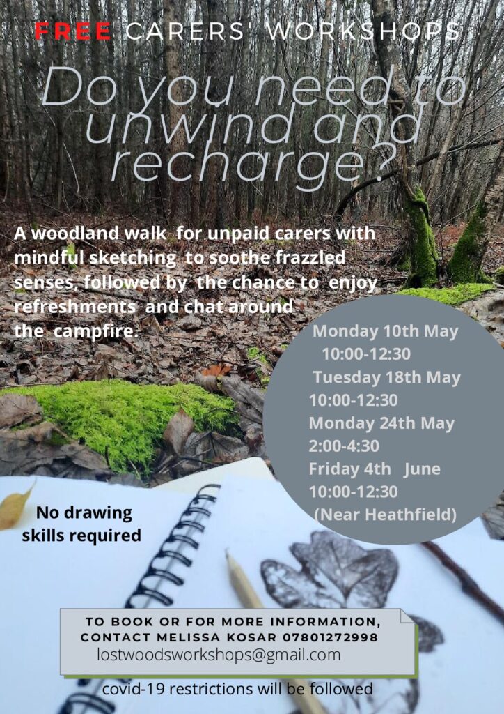 A woodland walk for unpaid carers with mindful sketching to soothe frazzled senses, followed by the chance to enjoy refreshments and chat around